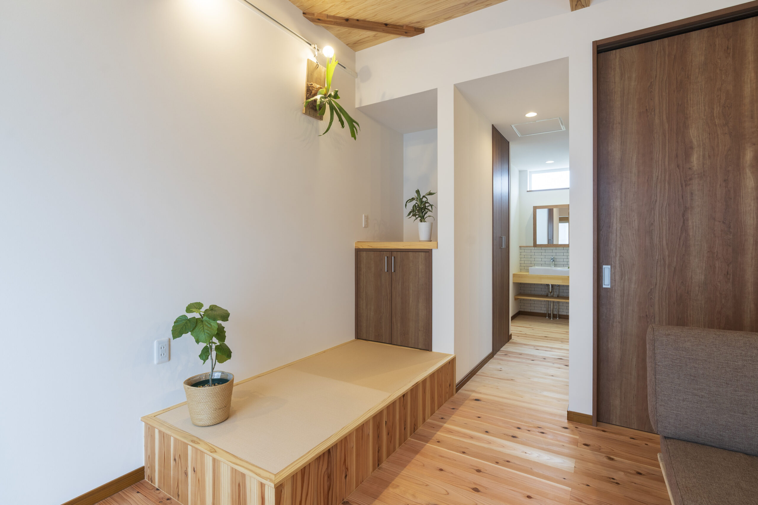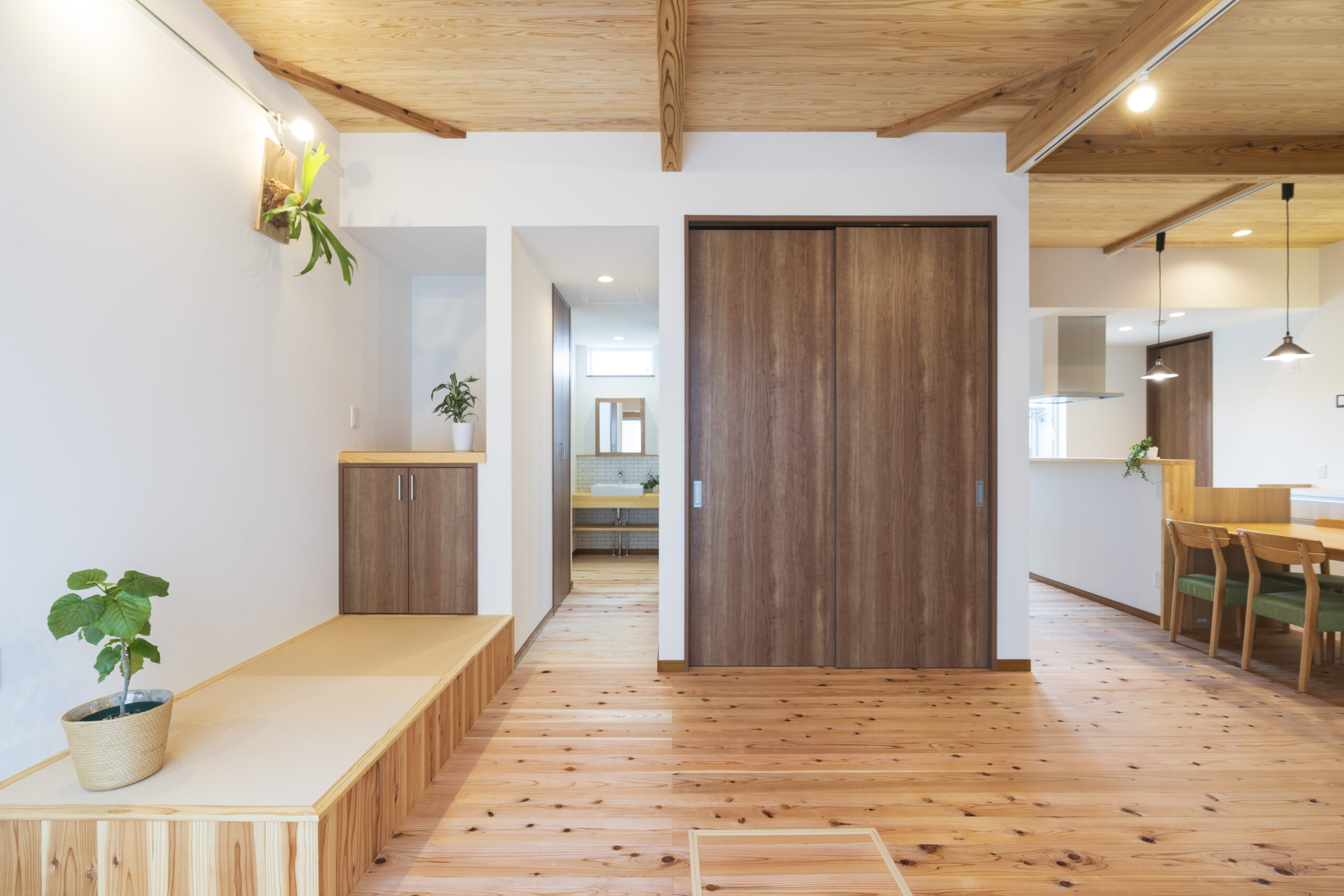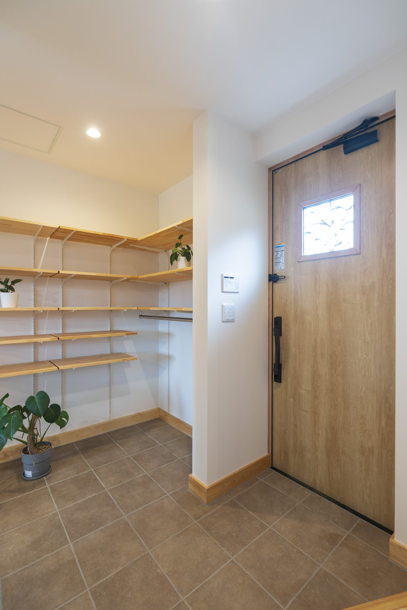 脱衣室兼ランドリールームで家事楽を叶え、収納もたっぷり。